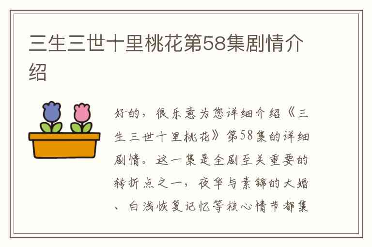 希望这份详细的剧情介绍能帮助您更好地理解《三生三世十里桃花》第58集的精彩内容!