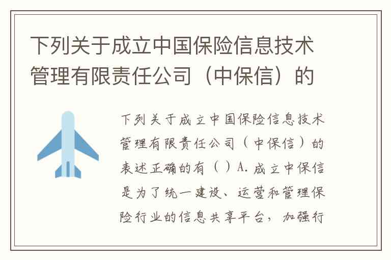 下列关于成立中国保险信息技术管理有限责任公司(中保信)的表述正确的有()A.成立中保信是为了统一建设、运营和管理保险行业的信息共享平台,加强行业信息资源的整合与利用,加快和促进现代保险服务业建设进程 B.公司的基本定位是建设和运营保险信息共享平台,使其成为促进保险业发展、加强保险监管、保护保险消费者利益、支持保险业参与社会治理四位一体的行业公共基础设施 C.中保信的主要任务就是要建设集中统一、设计科学、功能完善、安全高效的保险信息共享平台 D.公司建立规范的治理结构并以营利为目的