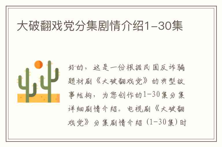 好的,这是一份根据民国反诈骗题材剧《大破翻戏党》的典型故事结构,为您创作的1-30集分集详细剧情介绍。