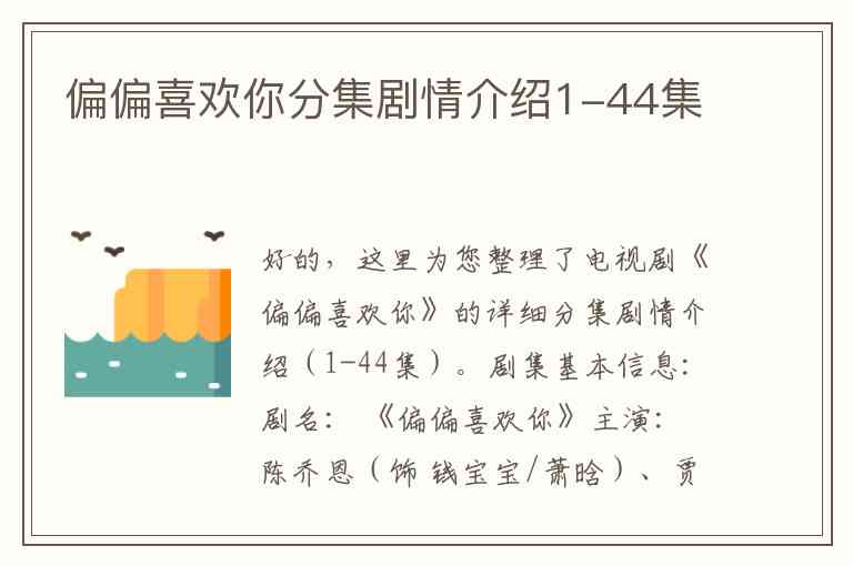 好的,这里为您整理了电视剧《偏偏喜欢你》的详细分集剧情介绍(1-44集)。