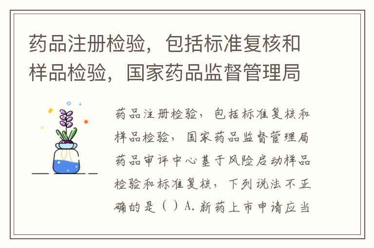 新药属于创新性强、风险较高的品种,注册检验为法定必经程序,需同时完成样品检验和标准复核。标准复核需对质量标准的科学性、检验方法可行性进行全面评估。