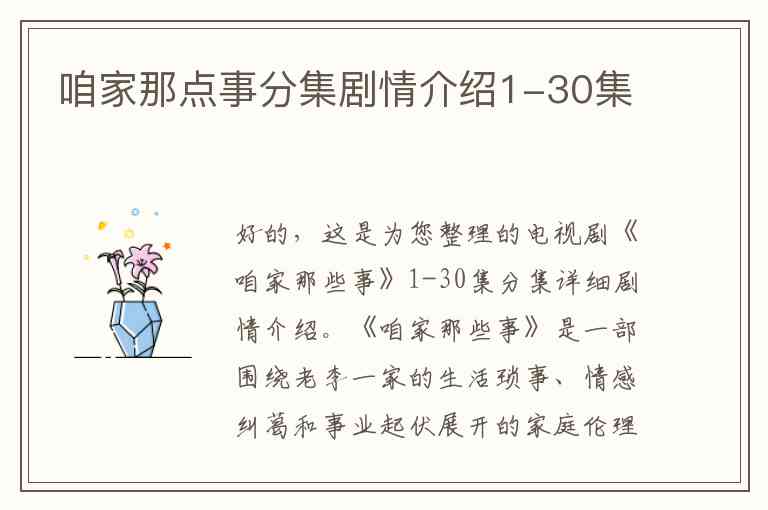 好的,这是为您整理的电视剧《咱家那些事》1-30集分集详细剧情介绍。