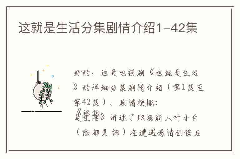 好的,这是电视剧《这就是生活》的详细分集剧情介绍(第1集至第42集)。