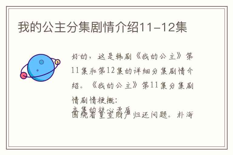 好的,这是韩剧《我的公主》第11集和第12集的详细分集剧情介绍。