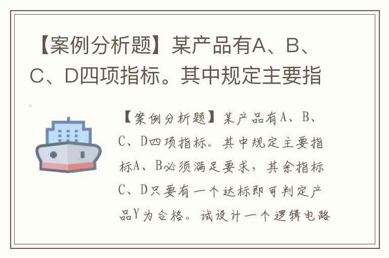 【案例分析题】某产品有A、B、C、D四项指标。其中规定主要指标A、B必须满足要求,其余指标C、D只要有一个达标即可判定产品Y为合格。试设计一个逻辑电路实现此产品合格判定功能,要求:画出用与非门实现该电路的逻辑图。
