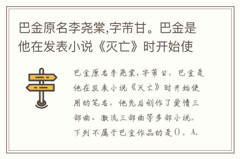 巴金原名李尧棠,字芾甘。巴金是他在发表小说《灭亡》时开始使用的笔名。他先后创作了爱情三部曲、激流三部曲等多部小说。下列不属于巴金作品的是()。A.《小桔灯》 B.《秋》 C.《家》 D.《春》