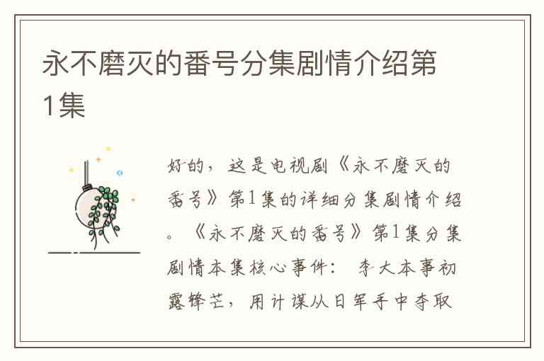 好的,这是电视剧《永不磨灭的番号》第1集的详细分集剧情介绍。