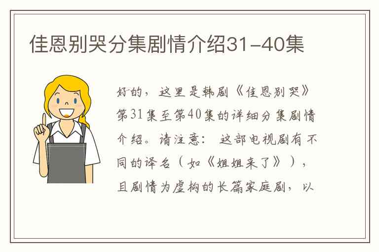 好的,这里是韩剧《佳恩别哭》第31集至第40集的详细分集剧情介绍。