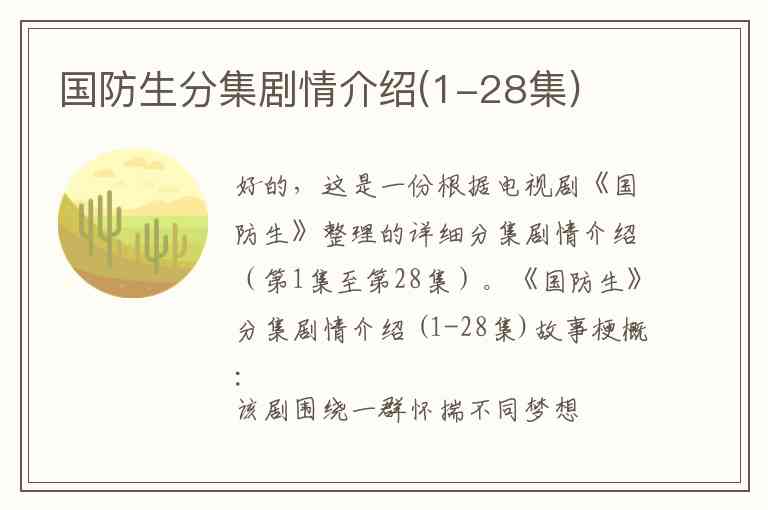 好的,这是一份根据电视剧《国防生》整理的详细分集剧情介绍(第1集至第28集)。