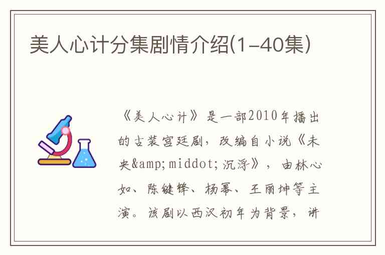 以下是《美人心计》第1集至第40集的详细分集剧情介绍: