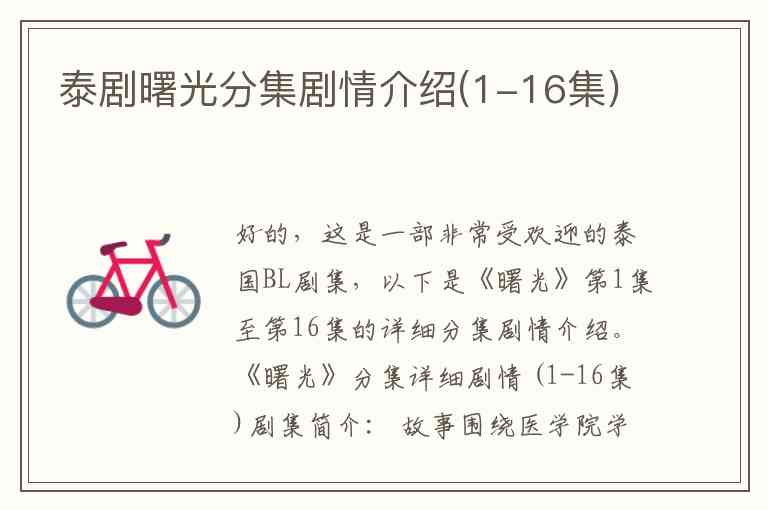 好的,这是一部非常受欢迎的泰国BL剧集,以下是《曙光》第1集至第16集的详细分集剧情介绍。
