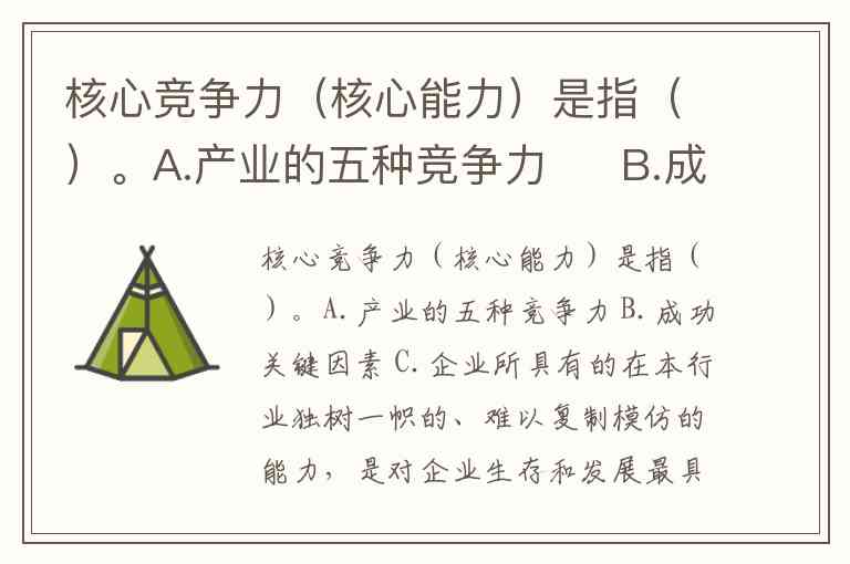 核心竞争力(核心能力)是指()。A.产业的五种竞争力 B.成功关键因素 C.企业所具有的在本行业独树一帜的、难以复制模仿的能力,是对企业生存和发展最具影响的竞争力 D.公司在特定市场获得盈利必须拥有的技能和资产