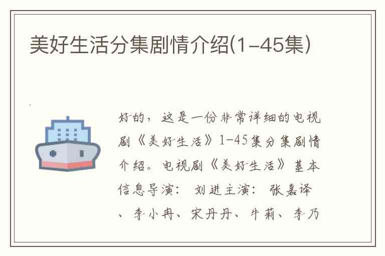 好的,这是一份非常详细的电视剧《美好生活》1-45集分集剧情介绍。