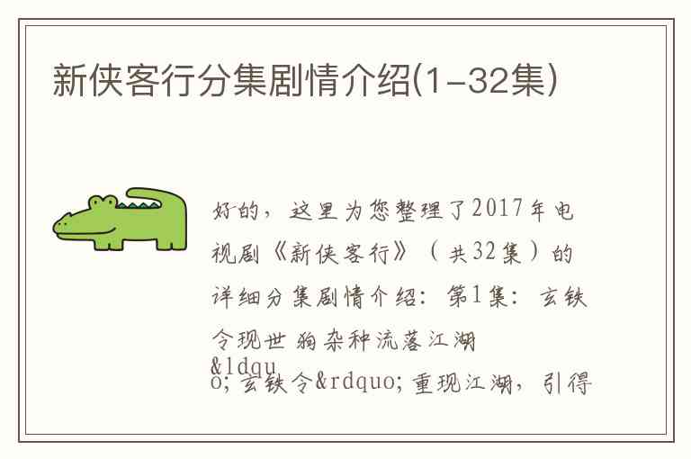 好的,这里为您整理了2017年电视剧《新侠客行》(共32集)的详细分集剧情介绍: