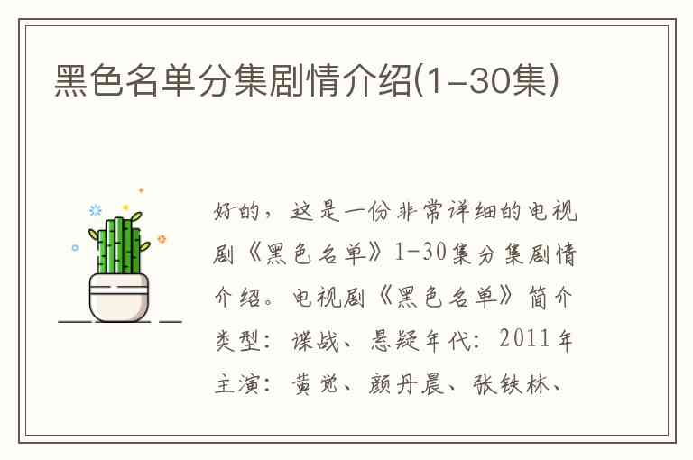 好的,这是一份非常详细的电视剧《黑色名单》1-30集分集剧情介绍。