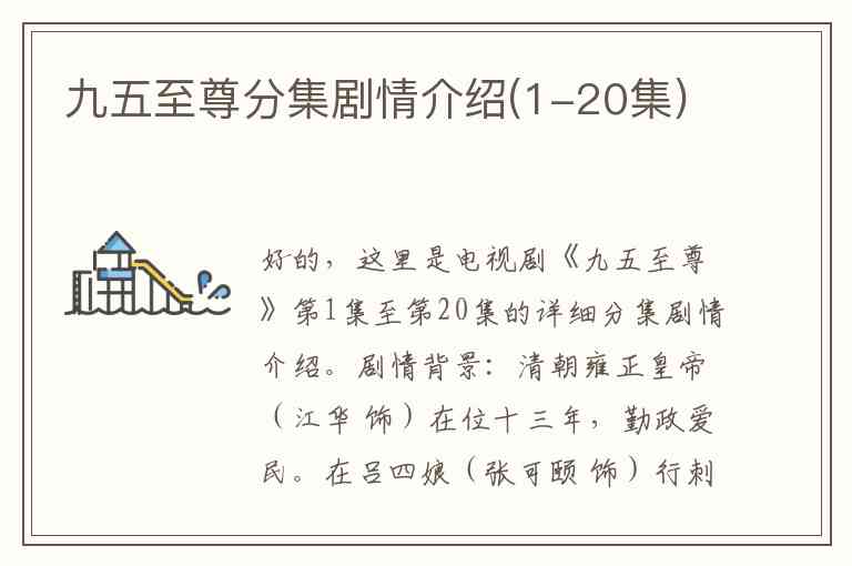 好的,这里是电视剧《九五至尊》第1集至第20集的详细分集剧情介绍。