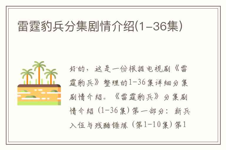 好的,这是一份根据电视剧《雷霆豹兵》整理的1-36集详细分集剧情介绍。