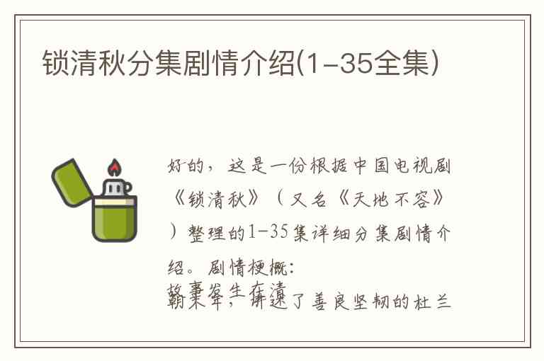 好的,这是一份根据中国电视剧《锁清秋》(又名《天地不容》)整理的1-35集详细分集剧情介绍。