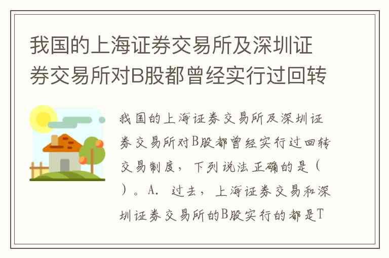 我国的上海证券交易所及深圳证券交易所对B股都曾经实行过回转交易制度,下列说法正确的是()。A.过去,上海证券交易和深圳证券交易所的B股实行的都是T+1回转交易制度 B.过去,上海证券交易所和深圳证券交易所的B股实行的进行的都是T+0回转交易制度 C.过去,上海证券交易所B股实行的是T+0回转交易制度,深圳交易所B股实行的是T+1回转交易制度 D.过去,上海证券交易所B股实行的是T+1回转交易制度,深圳交易所B股实行的是T+0回转交易制度