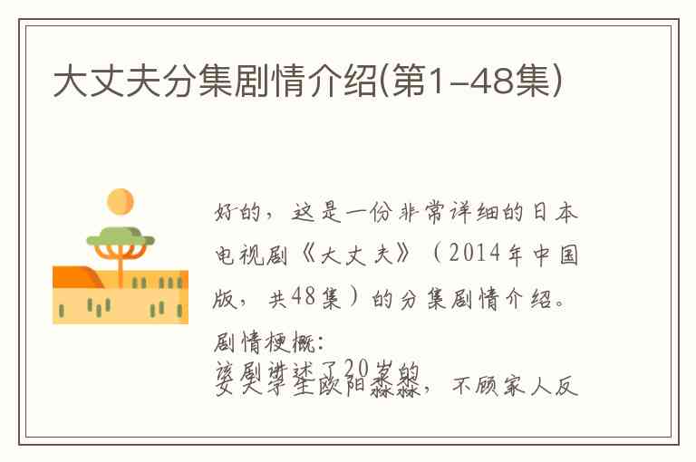好的,这是一份非常详细的日本电视剧《大丈夫》(2014年中国版,共48集)的分集剧情介绍。