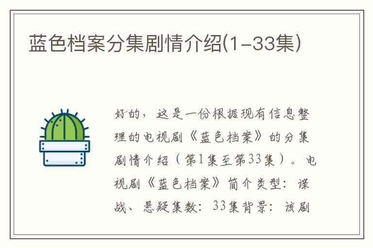 好的,这是一份根据现有信息整理的电视剧《蓝色档案》的分集剧情介绍(第1集至第33集)。