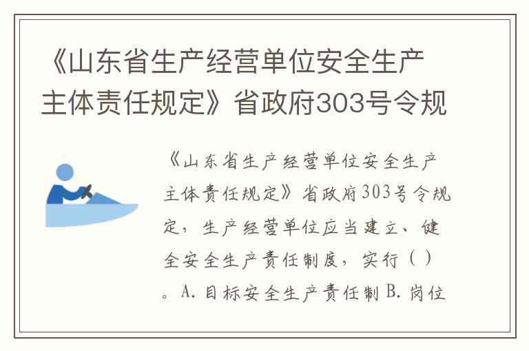 《山东省生产经营单位安全生产主体责任规定》省政府303号令规定,生产经营单位应当建立、健全安全生产责任制度,实行()。A.目标安全生产责任制 B.岗位安全生产责任制 C.标准安全生产责任制 D.全员安全生产责任制
