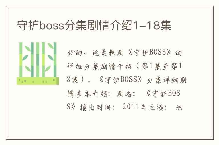 好的,这是韩剧《守护BOSS》的详细分集剧情介绍(第1集至第18集)。