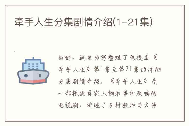 好的,这里为您整理了电视剧《牵手人生》第1集至第21集的详细分集剧情介绍。