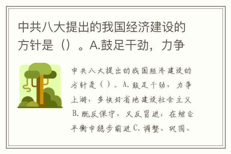 中共八大提出的我国经济建设的方针是()。A.鼓足干劲,力争上游,多快好省地建设社会主义 B.既反保守,又反冒进,在综合平衡中稳步前进 C.调整、巩固、充实、提高 D.调动一切积极因素建设社会主义