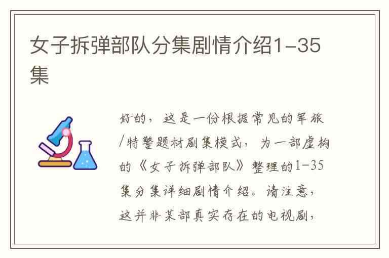 好的,这是一份根据常见的军旅/特警题材剧集模式,为一部虚构的《女子拆弹部队》整理的1-35集分集详细剧情介绍。请注意,这并非某部真实存在的电视剧,而是基于同类题材创作的剧情梗概。
