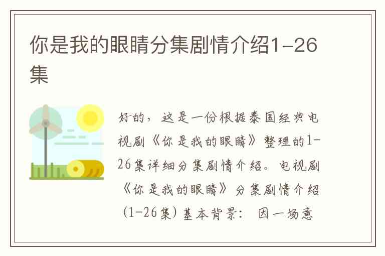 好的,这是一份根据泰国经典电视剧《你是我的眼睛》整理的1-26集详细分集剧情介绍。