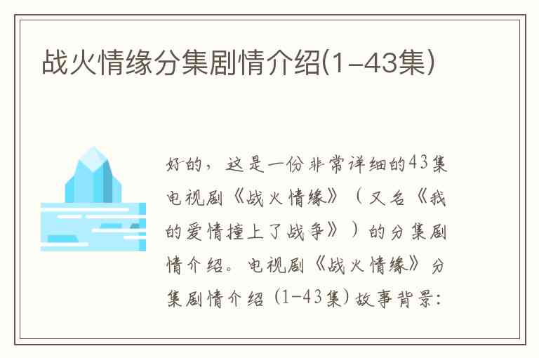 好的,这是一份非常详细的43集电视剧《战火情缘》(又名《我的爱情撞上了战争》)的分集剧情介绍。