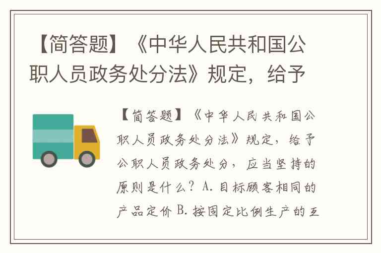 【简答题】《中华人民共和国公职人员政务处分法》规定,给予公职人员政务处分,应当坚持的原则是什么?A.目标顾客相同的产品定价 B.按固定比例生产的互联产品定价 C.按变动比例生产的互联产品定价 D.地理位置相近产品定价