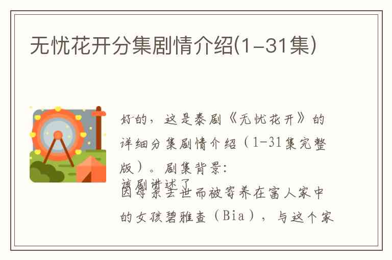好的,这是泰剧《无忧花开》的详细分集剧情介绍(1-31集完整版)。