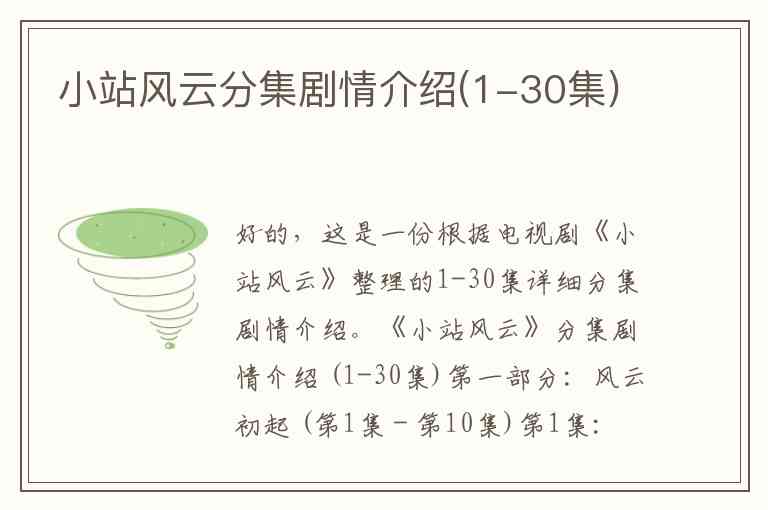 好的,这是一份根据电视剧《小站风云》整理的1-30集详细分集剧情介绍。