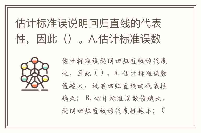 估计标准误说明回归直线的代表性,因此()。A.估计标准误数值越大,说明回归直线的代表性越大; B.估计标准误数值越大,说明回归直线的代表性越小; C.估计标准误数值越小,说明回归直线的代表性越小; D.估计标准误数值越小,说明回归直线的实用价值越小