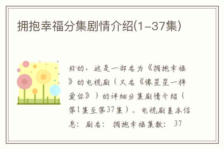 好的,这是一部名为《拥抱幸福》的电视剧(又名《像星星一样爱你》)的详细分集剧情介绍(第1集至第37集)。