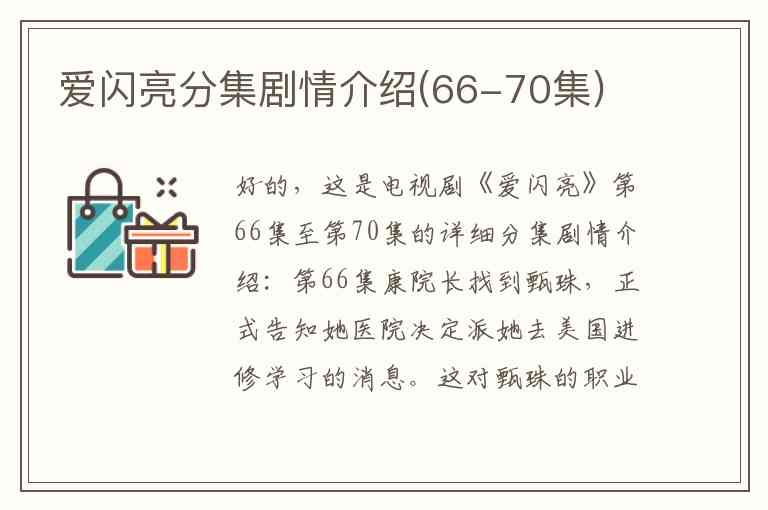好的,这是电视剧《爱闪亮》第66集至第70集的详细分集剧情介绍: