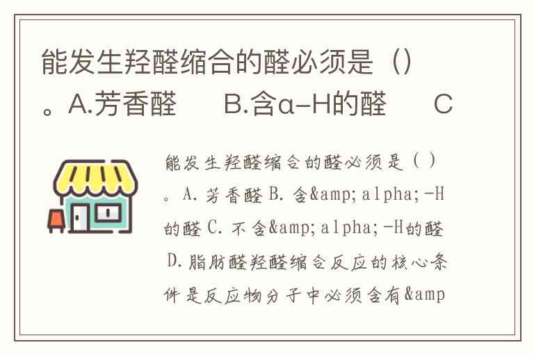 能发生羟醛缩合的醛必须是()。A.芳香醛 B.含α-H的醛 C.不含α-H的醛 D.脂肪醛