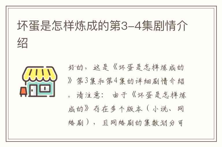 好的,这是《坏蛋是怎样炼成的》第3集和第4集的详细剧情介绍。