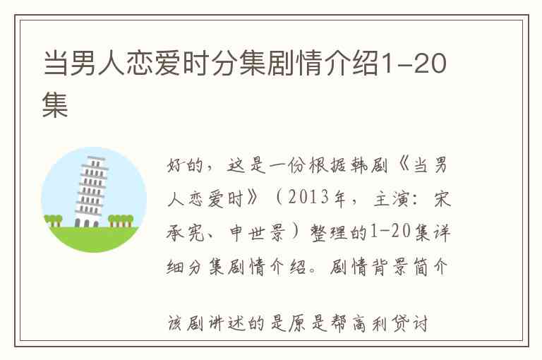 好的,这是一份根据韩剧《当男人恋爱时》(2013年,主演:宋承宪、申世景)整理的1-20集详细分集剧情介绍。