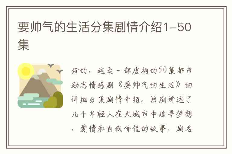 好的,这是一部虚构的50集都市励志情感剧《要帅气的生活》的详细分集剧情介绍。该剧讲述了几个年轻人在大城市中追寻梦想、爱情和自我价值的故事。