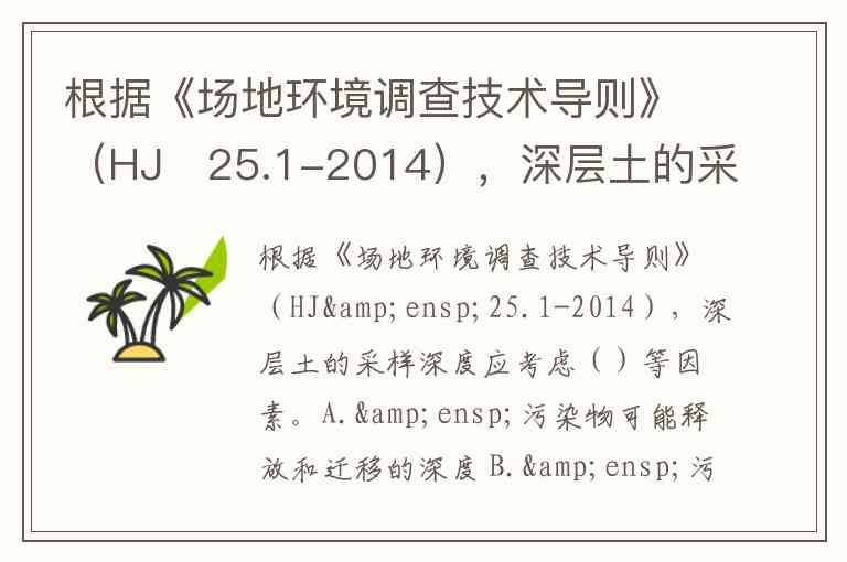 根据《场地环境调查技术导则》(HJ 25.1-2014),深层土的采样深度应考虑()等因素。A. 污染物可能释放和迁移的深度 B. 污染物性质 C. 土壤的质地和孔隙度 D. 地下水位和回填土