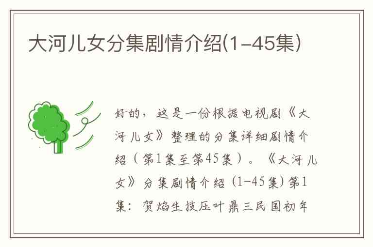 好的,这是一份根据电视剧《大河儿女》整理的分集详细剧情介绍(第1集至第45集)。