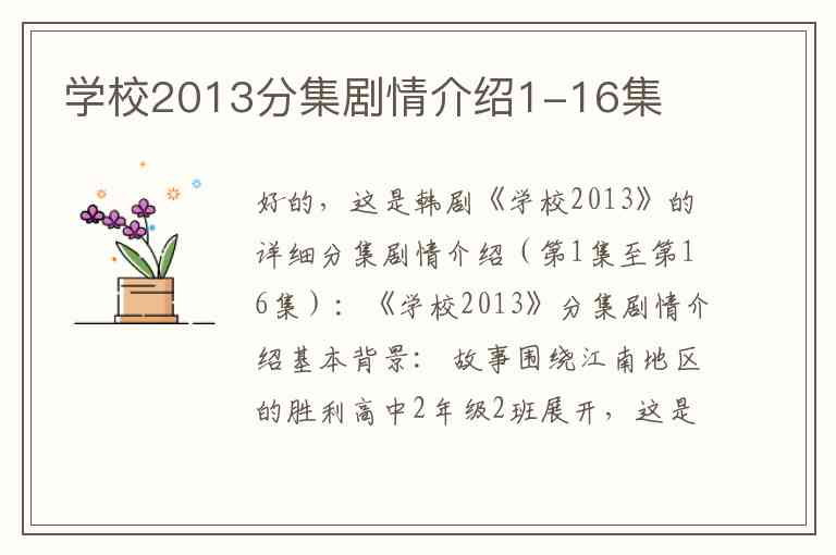 好的,这是韩剧《学校2013》的详细分集剧情介绍(第1集至第16集):