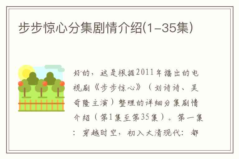 好的,这是根据2011年播出的电视剧《步步惊心》(刘诗诗、吴奇隆主演)整理的详细分集剧情介绍(第1集至第35集)。