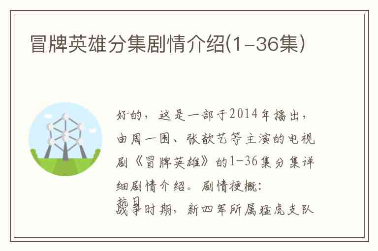 好的,这是一部于2014年播出,由周一围、张歆艺等主演的电视剧《冒牌英雄》的1-36集分集详细剧情介绍。
