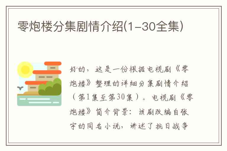 好的,这是一份根据电视剧《零炮楼》整理的详细分集剧情介绍(第1集至第30集)。