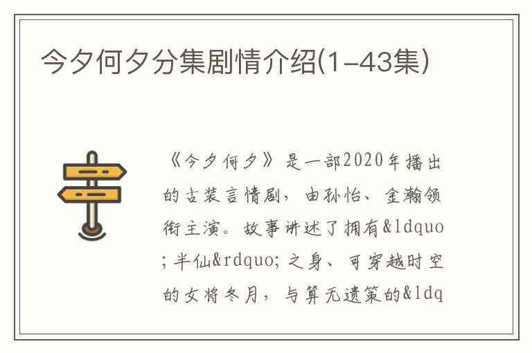 《今夕何夕》是一部2020年播出的古装言情剧,由孙怡、金瀚领衔主演。故事讲述了拥有“半仙”之身、可穿越时空的女将冬月,与算无遗策的“奸臣”冯夕,在乱世中携手辅佐皇子庞钰,匡扶正义、安定天下,并在此过程中相知相爱的故事。