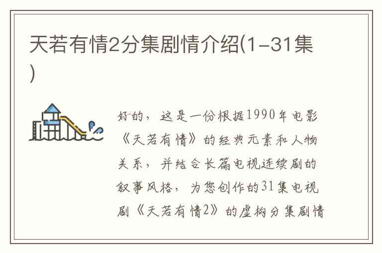 好的,这是一份根据1990年电影《天若有情》的经典元素和人物关系,并结合长篇电视连续剧的叙事风格,为您创作的31集电视剧《天若有情2》的虚构分集剧情。